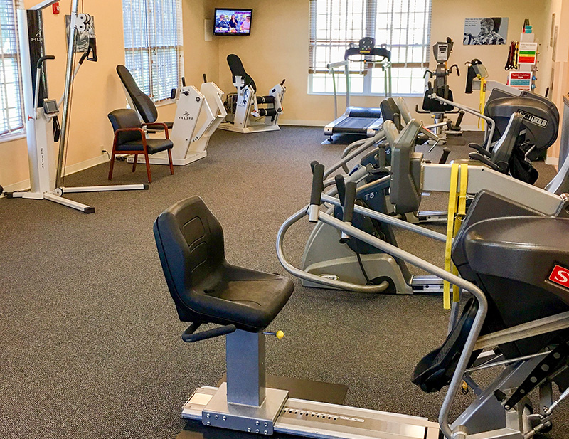 The therapy department uses many updated clinical practice guidelines, and the speech therapist is certified in Vital Stim. The facility has a state-of-the art fitness center filled with various types of exercise equipment and a fully functioning kitchen. The sizable gym includes HUR Exercise Equipment, High/Low Tables, NuSteps, Sci Fit, Upper Body Ergometer. Programs offered: Stand Strong, cognitive disabilities, and chronic conditions.